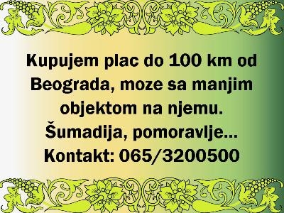 Kupujem plac do 100km od Beograda, moze sa manjim objektom